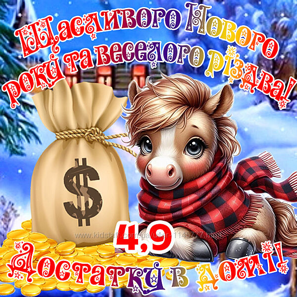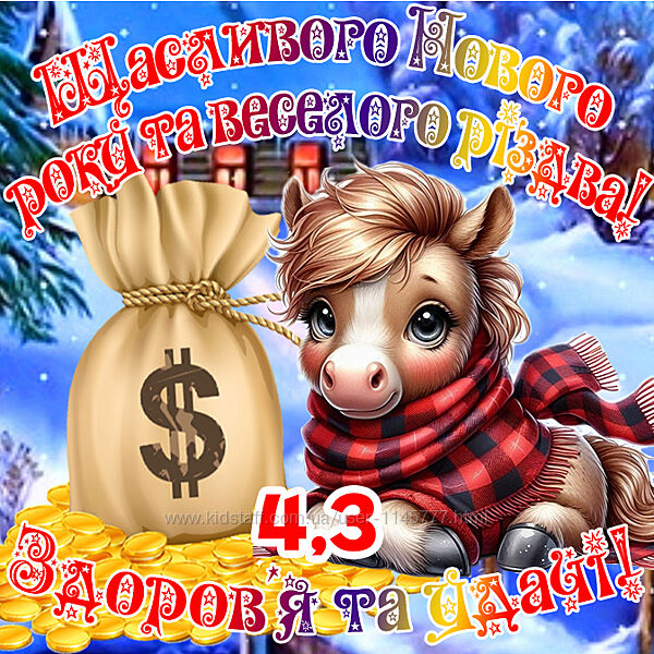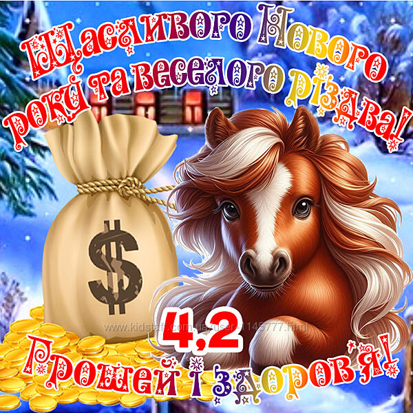 Магніт кінь символ 2026 з побажаннями Щасливого Нового року і різдва es4,1