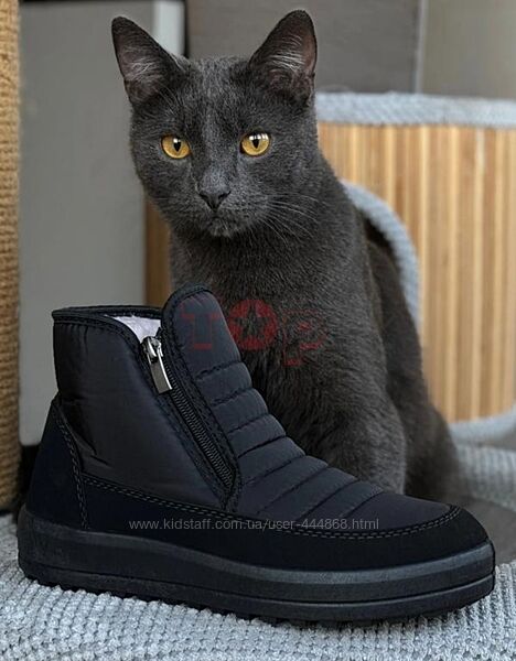 Подробное описание: Дутіки короткі чорні жіночі зимові черевики на двох блискавках