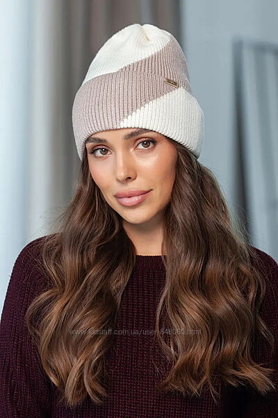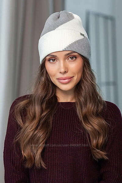 Подробное описание: Шапочка, шапка жіноча двоколірна