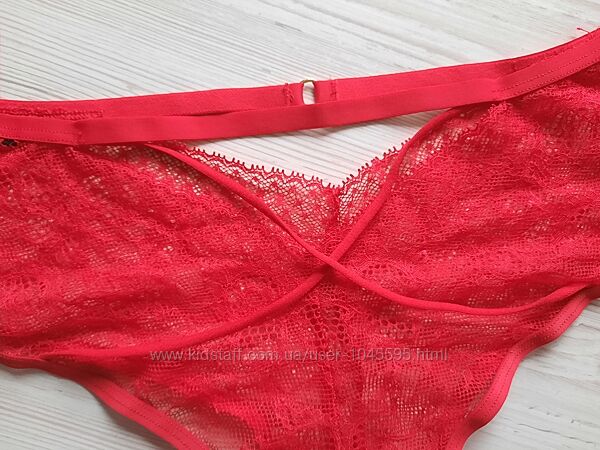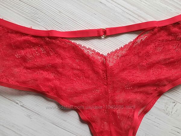 Подробное описание: Красные трусики кружевные бразилианы Victorias secret портупея р. М