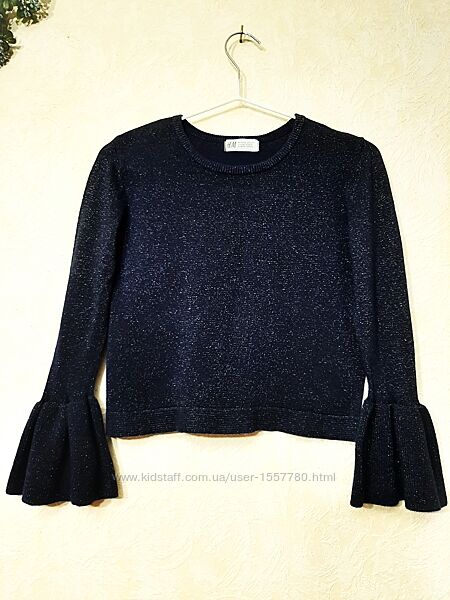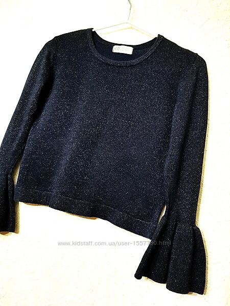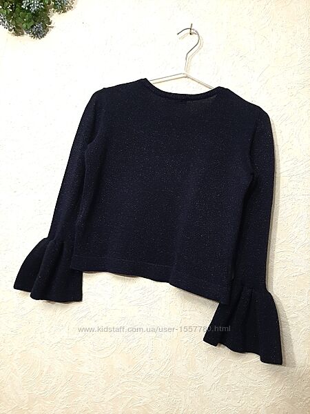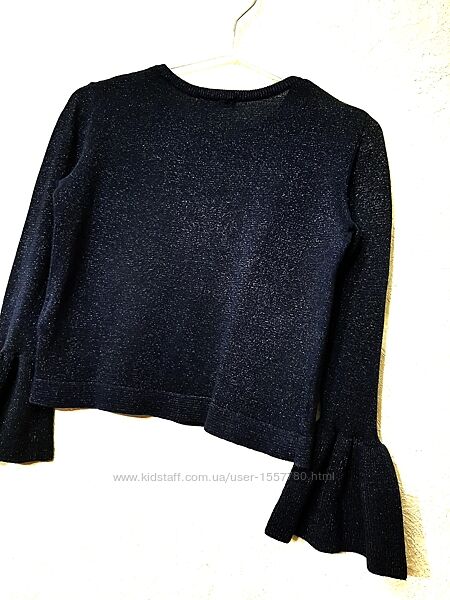 Джемпер синій зі сріблястим блиском, теплий, демі/зима, в´язаний, середня довжина, рукави з воланами.Бренд H&M.
