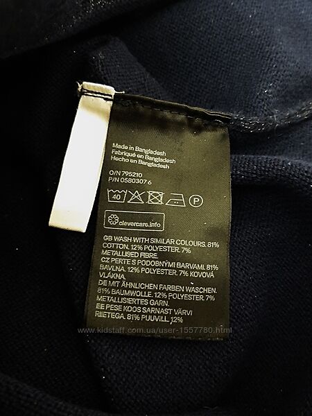 Склад 81% бавовна, 12% поліестер, 7% срібляста металева нитка.