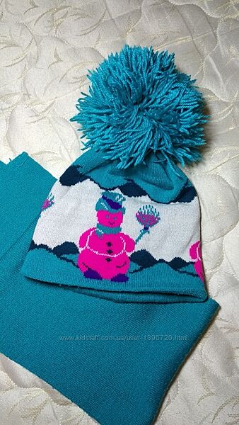 Подробное описание: Шапка с шарфом на девочку бирюзовая шапка с бумбоном на 5-9лет