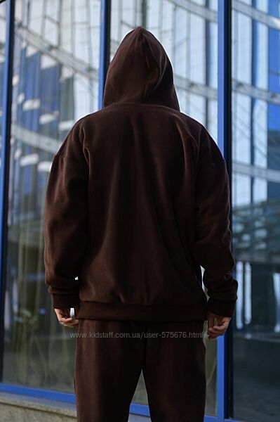 Тканина - турецький фліс із щільним начосом. Має гарну властивість зігрівати в холодну пору при цьому бути легким, що відрізняє його від інших теплих тканин. Високої якості пошиття. Штани прямі в поясі резинка та шнурок який допомагає коригувати об´єм. Шнурок на капюшоні.