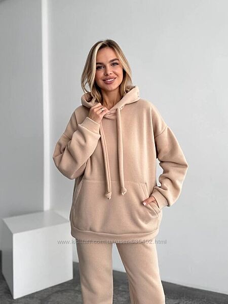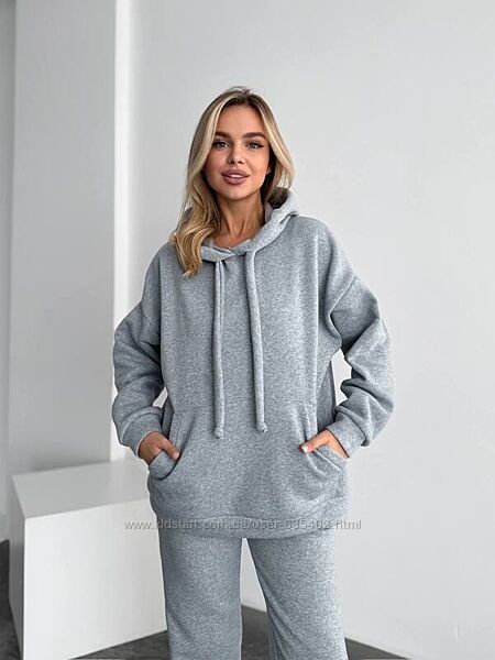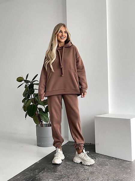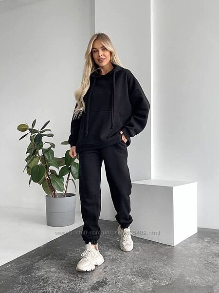 Оверсайз худі з капюшоном і зручними кишенями додає затишку, штани на гумці з манжетами