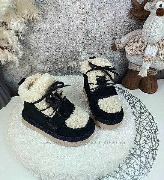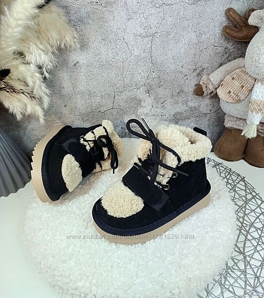 Верх якісний еко-замш+ хутро тедді. Всередині густа овчина 60% натуральна. Фіксація шнурками, зверху липучкою, збоку на замочку. Підходять на будь-яку повноту ніжки. Підошва антиковзна. Температурний режим до - 25°. Дуже легенькі та зручні. Заміри вказані від краю до краю устілки.