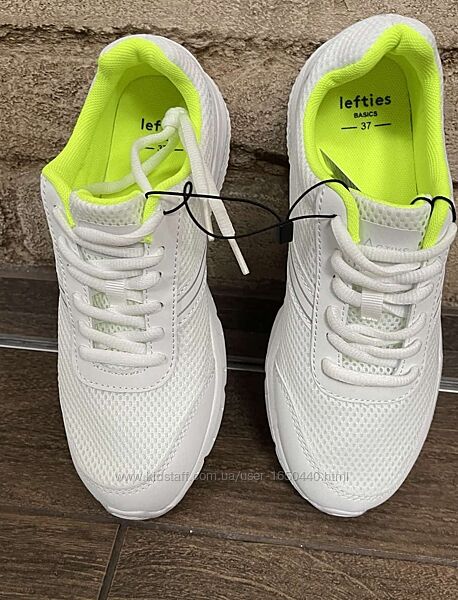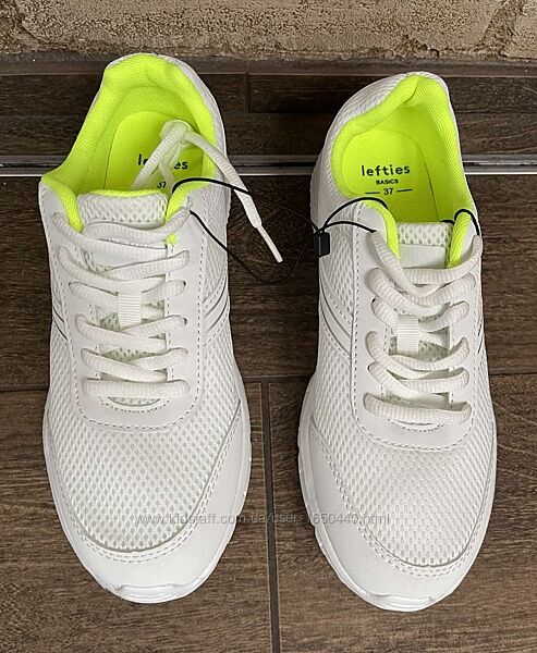 Кроссовки белого цвета с неоновыми (салатовыми) деталями, такими как внутренняя часть и язычок. - Спортивный и лёгкий дизайн.- Дышащий материал.Lefties Оригинал Размер EURO 37 По стельке - 23 смДругие объявления продавца
