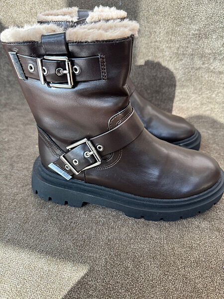 Черевик на підкладці з подвійною пряжкою збоку. Бічна блискавка. Гнучка устілка. Зубчаста гумова підошва в стилі протектора.34 р-22 см