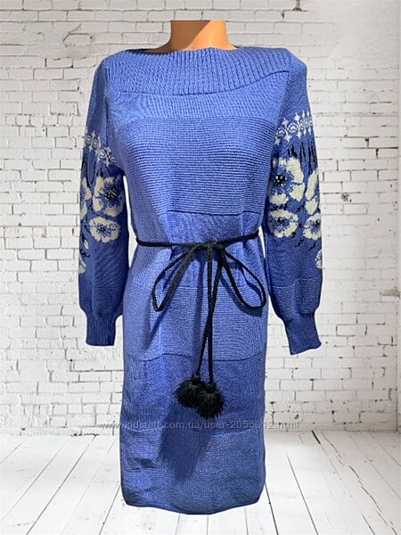 Подробное описание: В´язана тепла сукня з квітами етно сукня шерсть блакитна