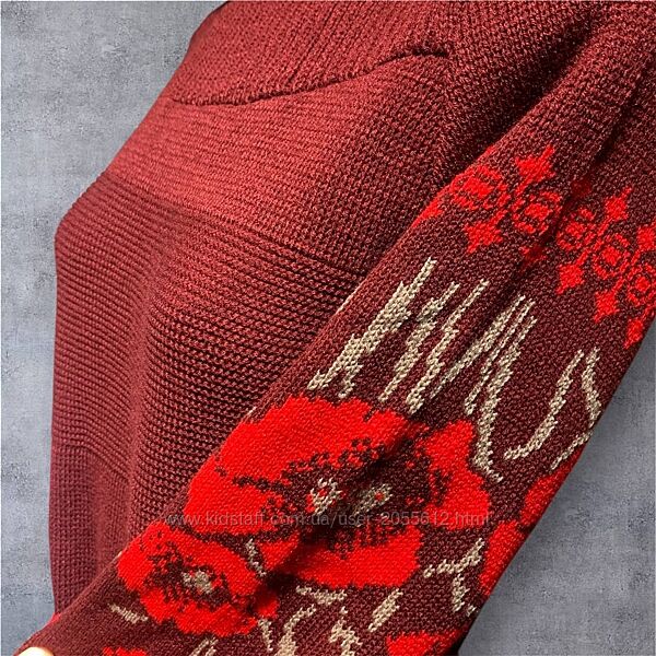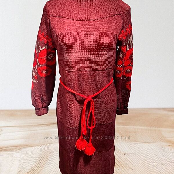 Подробное описание: В´язана тепла сукня з квітами етно сукня вовна бордо