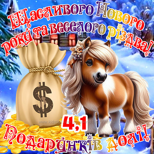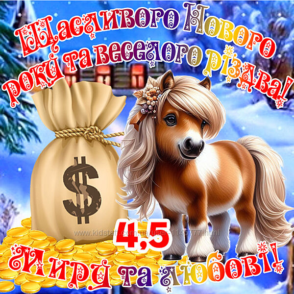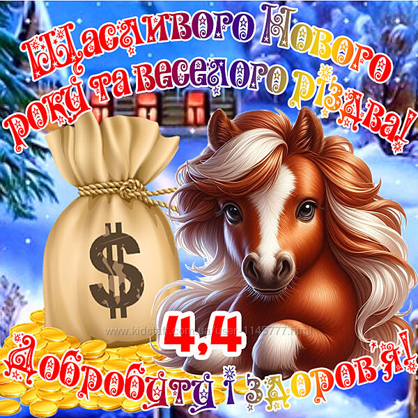 Магніт кінь символ 2026 з побажаннями Щасливого Нового року і різдва es4,3