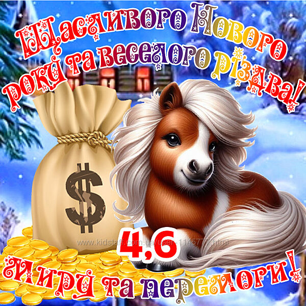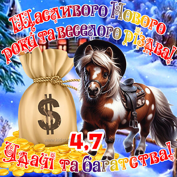 Магніти новорічні рік коня 2026 з побажаннями, конь, лошадьрозмір магніта 6,5х6,5см