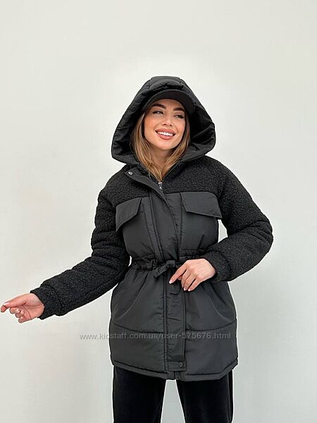 Подробное описание: р.42 до 48р. Зимова куртка на силіконі, еко хутро тедді