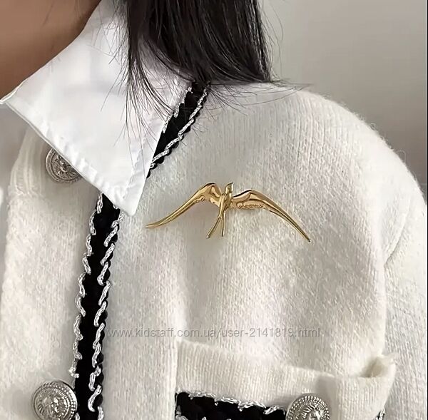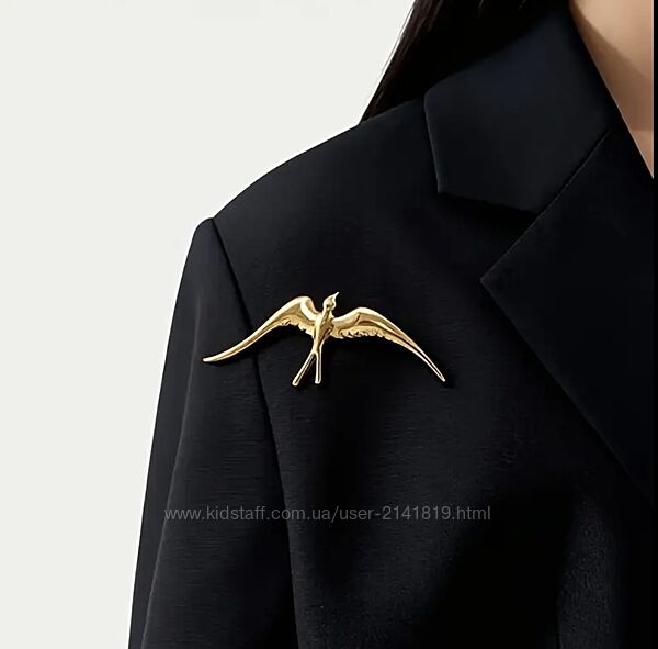 Подробное описание: Стильная изящная брошь золотая птица, брошка ласточка, брошка птичка