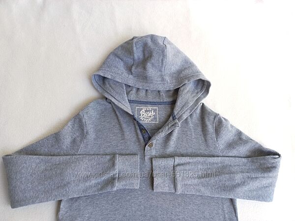 Пропоную сірий трикотажний реглан лонгслів худі, від Matalan. Матеріал 100% бавовна, тонкий, тягнеться. Уживаний в школу акуратно, стан дуже добрий, без дефектів, дивіться фото.Розмір вказано на 10-11 років. Довжина 55 см, довжина рукава від шиї 65 см, ширина грудей під пахвами 44+ см.