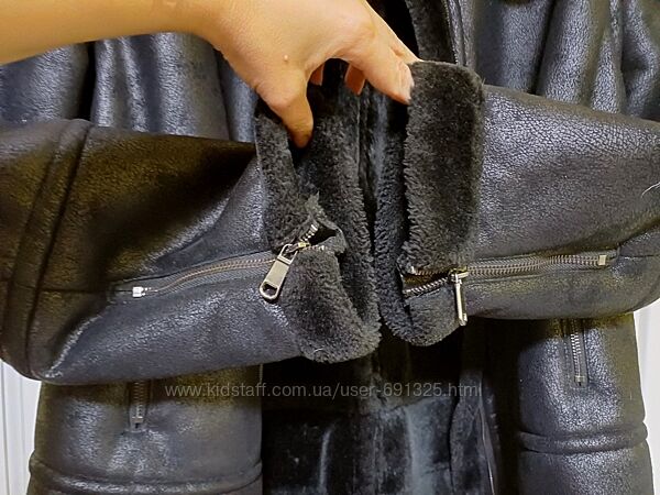 Пропоную чорну штучну дублянку авіатор, від John Rocha. Уживана 1 раз, акуратно, не підійшов розмір, стан нової, дивіться фото.,Розмір вказано 22. Довжина 68 см, ширина плечей 50 см, довжина рукава від плеча 65 см, ширина грудей під пахвами 66 см.