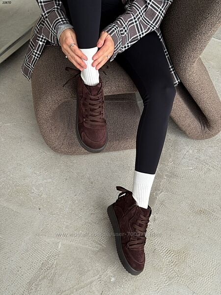 Черевики демі, натуральна замша, шоколад, на шнурівці, в стилі barefoot