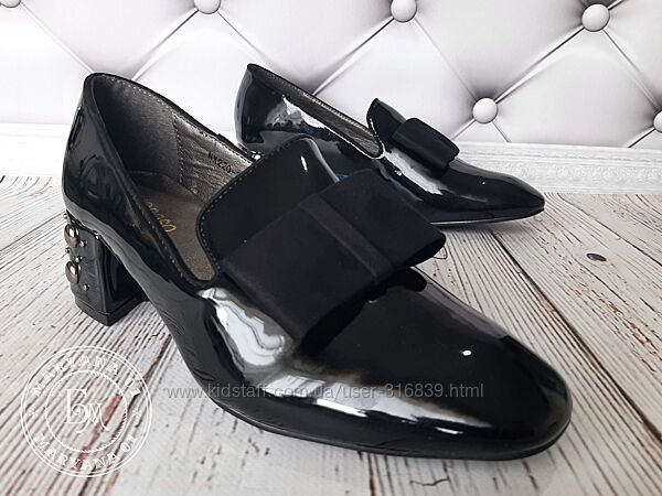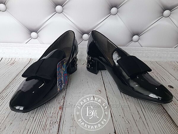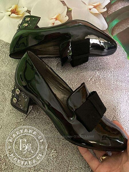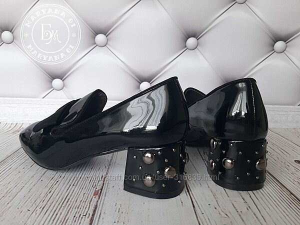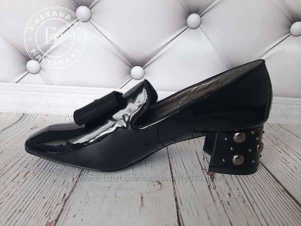 ❤Жіночі лаковані туфлі на підборах із декором❤Елегантні жіночі туфлі, які поєднують класичний стиль і сучасний дизайн. Виготовлені з якісного лакованого матеріалу чорного кольору, який додає образу вишуканості. Оригінальний широкий бант спереду й металеві елементи на підборі створюють ефектний акцент.