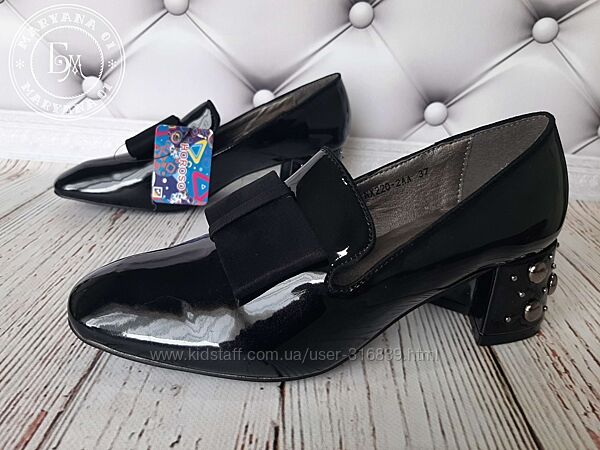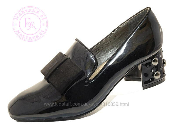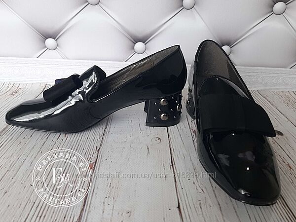 Подробное описание: Жіночі лаковані туфлі на підборах із декором / чорні