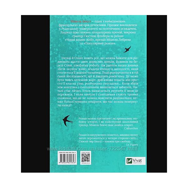 Автор Мішель Бюссі Видавництво Vivat Жанр: Детективи Серія: Художня література, Сучасна іноземна проза Рік видання 2020 Палітурка тверда Кількість сторінок 464 Мова українська Розмір 135 х 205 мм