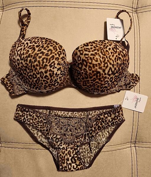 Новий жіночі набір білизни Jasmine Lingerie Elsa (Україна) леопардовий коричневий.Італійська вишивка на мережеві.