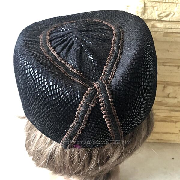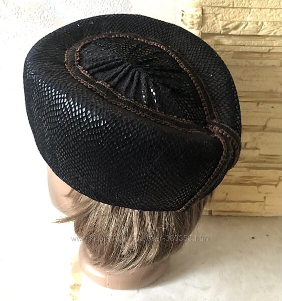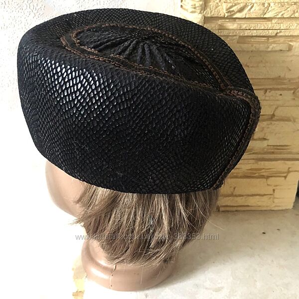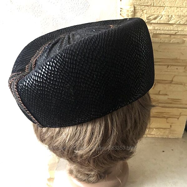 Черная фетровая шляпка таблетка ламинированная тканью под рептилию. размер 56—57 см для творческих проектов и повседневной носкеДругие объявления продавца