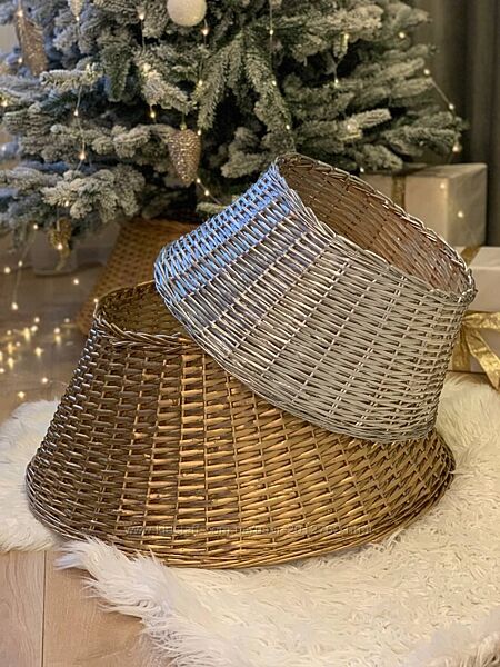 Подробное описание: Плетений золотистий кошик з лози під ялинку 65 / 70 см корзина спідниця