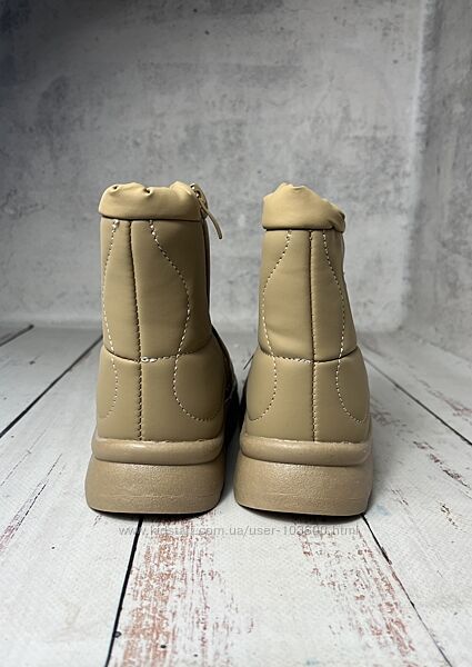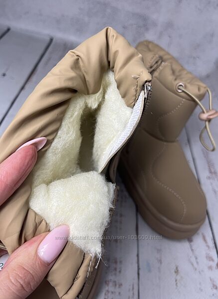 Верх взуття зроблено з сучасної екошкіри, яка дуже м´яка, еластична, приємна на дотик та добре тримає формуВсередині хутряна устілка, яка легко виймається та м´яка хутряна підкладка, до складу якої входить 60% натурального хутра