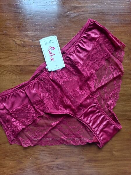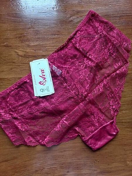 Красивые женские трусики из узорчатой ткани и оригинального кружева. Средняя посадка, хлопковая ластовица.Размер L