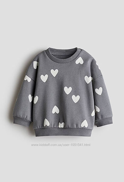 Комплект на байці від H&M , колір сірий графіт принт сердечка .В комплекті (легінси спортивні і світшот ) На легінсах утяжка. Склад: 80% бавовна, 20% поліестер. БайкаРіст 74 на 6-9 м (кофта: довжина - 35 см, ПОГ - 32 см, рукав - 18 см.