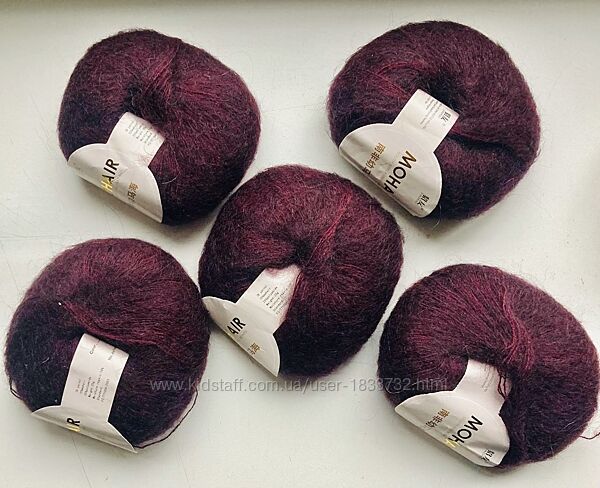 Mohair - ніжний, тонкий і приголомшливо об´ємний мохер. Це шерсть ангорських козенят першої стрижки і м´який меринос, змотані на тонку поліамідную нитку. Пряжа тонка і легка , добре утримує тепло, полотно при натягу пружинить і тримає первісну форму вага 25 г,довжина 237 мЦіна за один моток