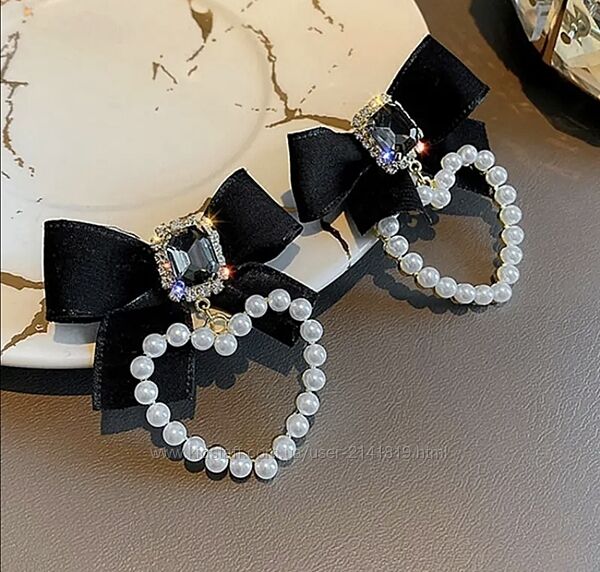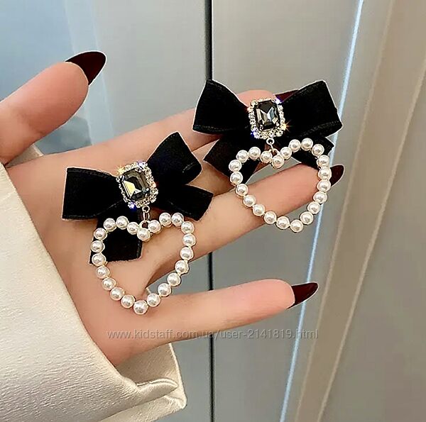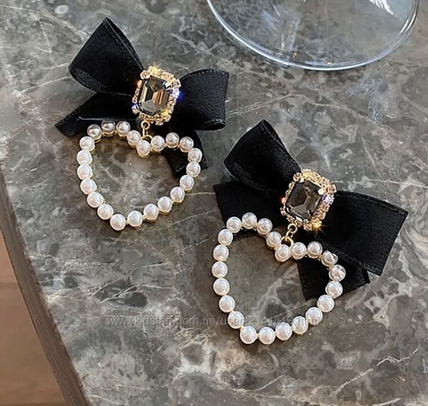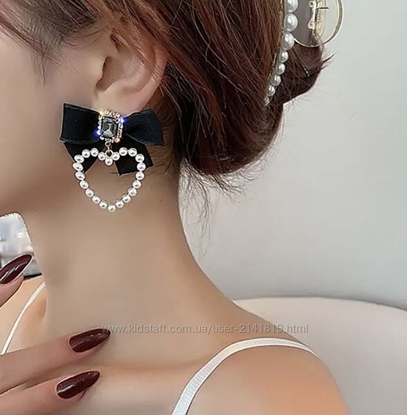 Элегантные ретро серьги с имитацией жемчуга и бантом в форме сердцаТип застежки: гвоздики