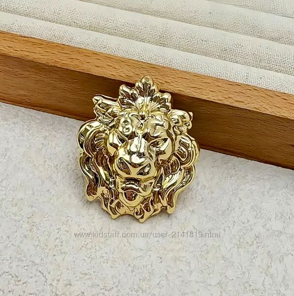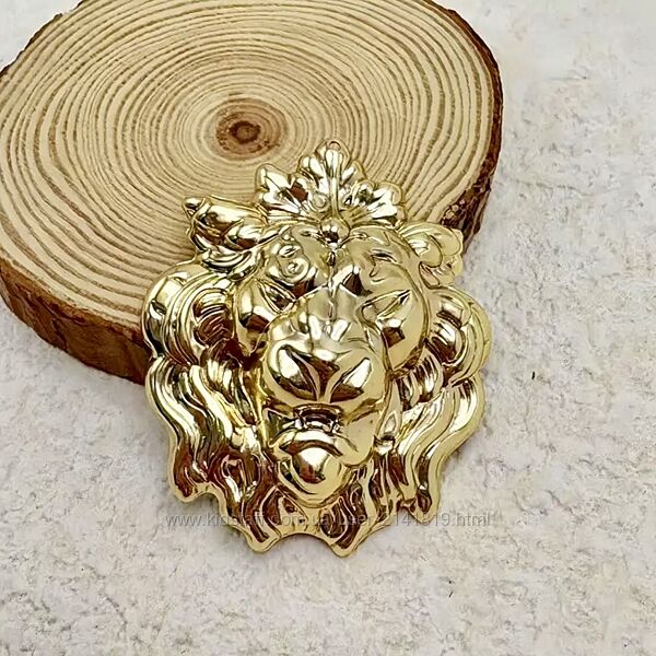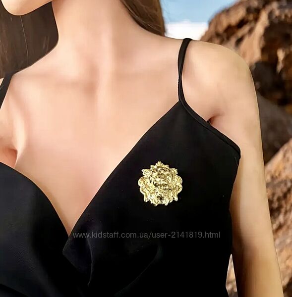 Элегантная брошь золотистого цвета с изображением головы льва. Очень стильная, красиво смотрится.Размеры: 4,5 см х 3,8 см