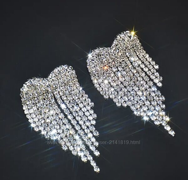 Серебристые серьги в форме сердечек стразы висюлькиРазмер: 5,6 см х 2,9 см