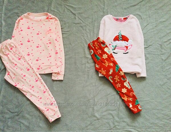 6-7 рок, Primark флісова піжама з Новорічним принтом та велюрова в Зірки. тепла, м"якенька, на манжетахСтан нових!