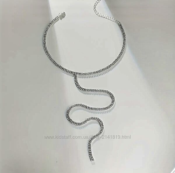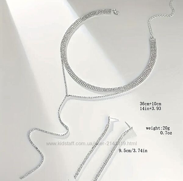 Подробное описание: Женский набор бижутерии чокер-колье и серьги стразы, серебристый комплект