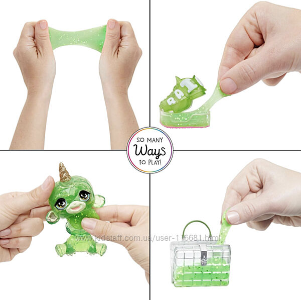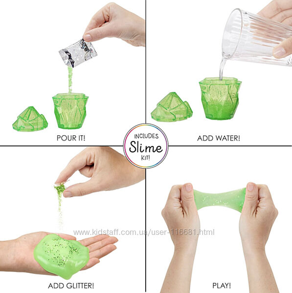 У наборі Jade Hunter є все необхідне для створення блискучого слайма своїми руками, включаючи слайм та блискучі порошки, а також шейкер для приготування та зберігання слайма. Просто насипте безбарвний слайм і блискучі порошки в кристал, додайте трохи води і струсіть, щоб отримати мерехтливий зелений слайм! Вперше в історії Джейд має чарівний чарівний вихованець, мавпочку з рогом. Щоб змінити колір чарівної мавпочки, ви можете заповнити голову вихованця своїм саморобним слаймом. У Джейд є чарівні туфлі та сумочка, які ви можете налаштувати та змінити колір, додавши трохи слайма. Джейд одягнена у свій фірмовий Зелений колір з голови до ніг з безліччю блискіток. У неї чудові, деталізовані риси обличчя в її моді, красиве довге зелене волосся, частково зачесане назад, довгі вії та скляні очі. І її обличчя мерехтить чарівними іскрами. Оскільки вона повністю шарнірна, її легко налаштовувати та з нею весело грати. Її голова, руки, кисті та ноги згинаються для безлічі кумедних поз, включаючи шпагат! Або ви можете виставити її на стенді для ляльки, що додається. У комплект входить 11-дюймова лялька з повним ляльковим вбранням і чарівними блискітками на обличчі, лялькове взуття, що налаштовується, сумочка, що налаштовується, чарівний вихованець з рогом, що налаштовується, набір для самостійного виготовлення слайма — 1 пакетик порошку слайма + 1 пакетик блискіток + 1 кришталевий шейкер для приготування та зберігання слайма.
