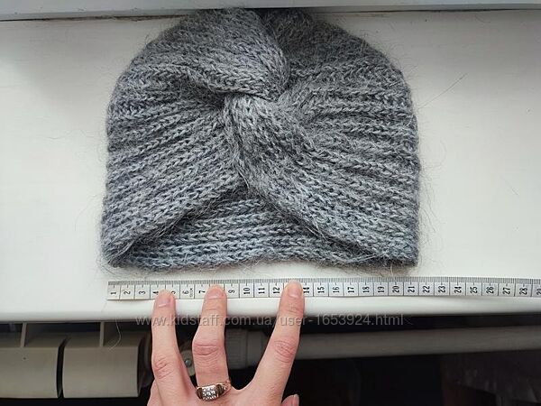 Подробное описание: Модная красивая серая теплая мохеровая шапочка-чалма