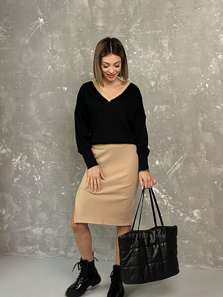 ✔️низ – спідниця міді, що облягає, з розрізом до середини стегна;