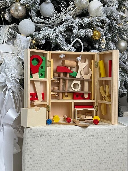 Набор 🪚 деревянных инструментов⚒️ и деталей конструктора 🔩 в удобном чемодане🧳