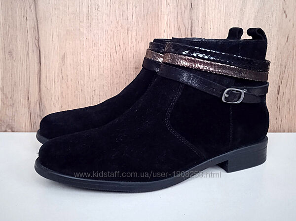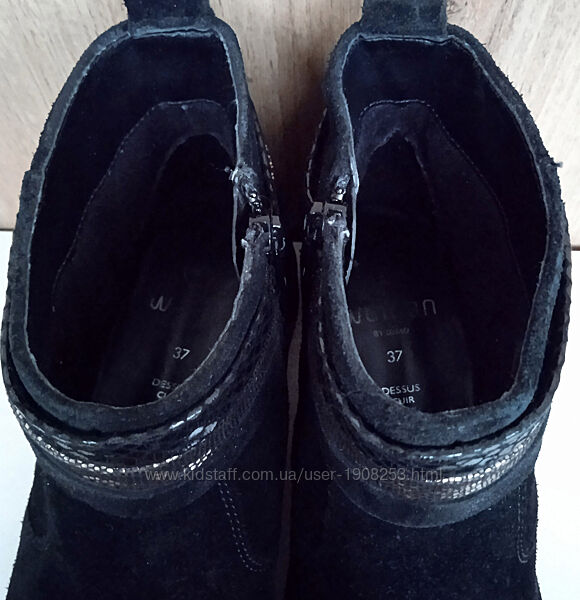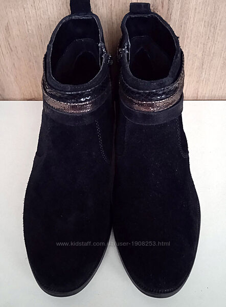 Бренд: Gemo, країна виготовлення Франція.Особливості моделі: європейський виробник, натуральна замша, достатньо легкі по вазі, міцні і добротні, м´які всередині, утеплені, мають зручну неслизьку підошву без підборів і універсальний класичний дизайн. Підходять на вузьку ніжку з невисоким підйомом. Стан практично нових.