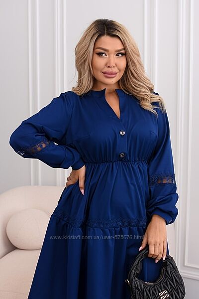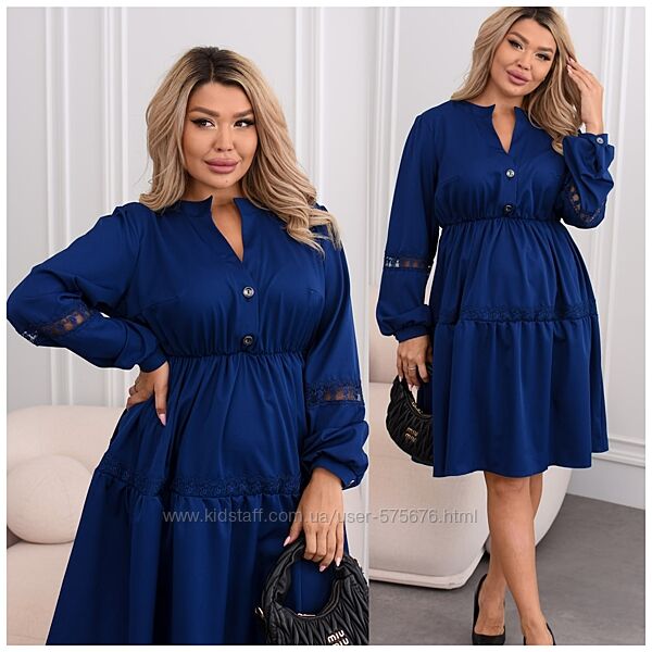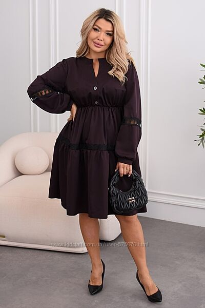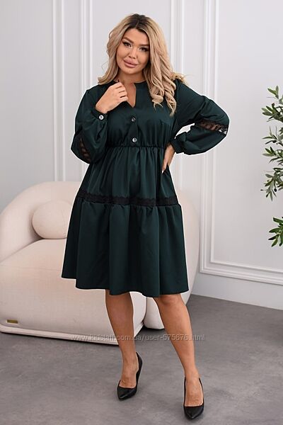 Подробное описание: р.48 до 62р. Сукня вільного крою єврокостюмка з кружевом