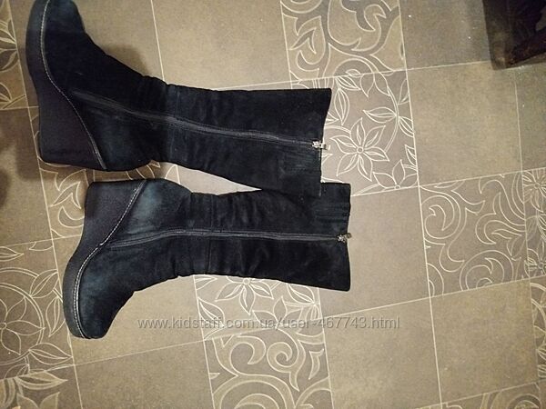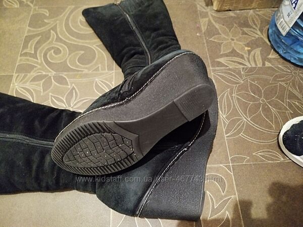 Пропоную Вам Зимові чобітки на танкетці у гарному стані. Все ціле, молнія працює, натуральна м`яка замша і натуральне хутро цигейка внутри без мікозів і хвороботвориних бактерій, грибків і найпростіших. 36 розмір 23-23,5см по устилці. Підошва надійно прошита по всій довжині. Дуже теплі. Збоку чоботи декоровані шкіряною смужкою із металевим декором, що надає вишуканості і елегантності господині. Дуже комфортна колодка. Висота танкетки 2-8 см, по суті, 6 см висота підбору. Підійдуть на високий підйом ноги і середню стопу. Підошва не ковзна. Висота замшевої частини чобітка 34 см від п`ятки. Ширина чобітка унизу біля стопи 12,5 см. Ширина чобітка у верхнійчастині 18 см. 100 грн. Майже даром за такі гарні чоботи. Зберігаються у власній коробочці у спеціальних взуттєвих чохлах. Із задоволенням відповім на всі питання.Оплата 100% на карту.Доставка: Нова Пошта, Укрпошта по всій Україні.