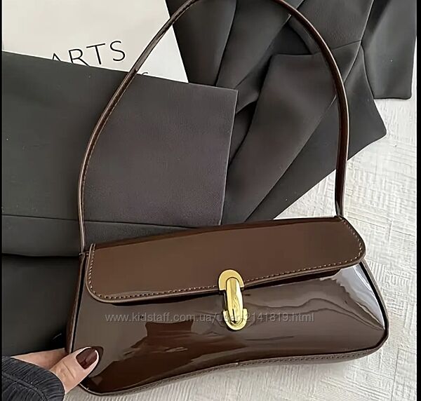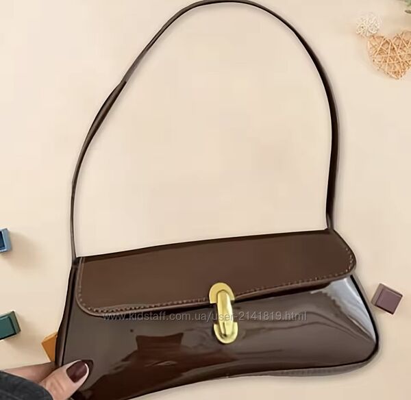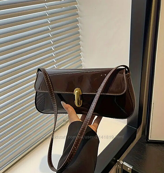 Женская коричневая мини сумочка клатч, лакированная коричневая сумочка
