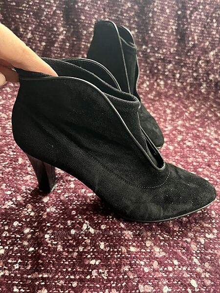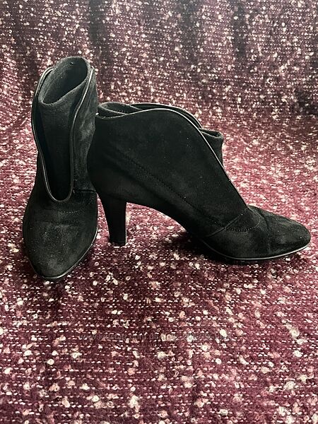 Ботильоны туфли, внутри идет как чулок, хорошо прилегает по ножке, 38 размер, на среднюю ножку, высотка каблука 8 см, и вверх по пяточке высота -8 см, хорошего качества, натуральный замш, каблук устойчив.спрашивайте на все ваши вопросы отвечу, оплата на карту, пересылаю нп, укрпочта уточняйте.