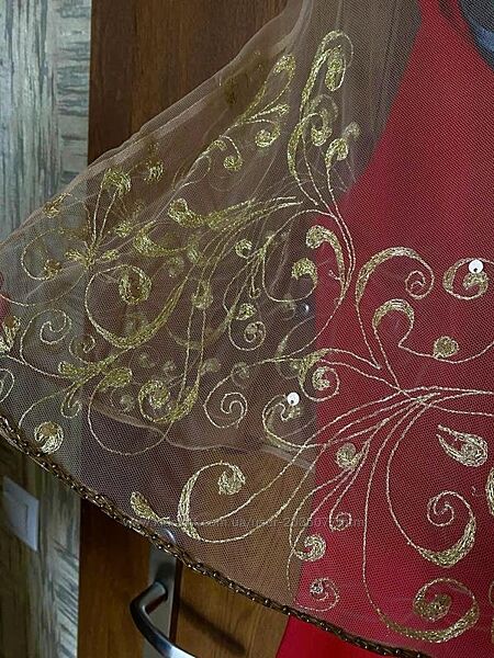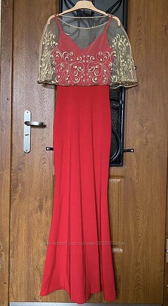 Подробное описание: Червоне вечірнє випускне плаття із золотистою накидкою