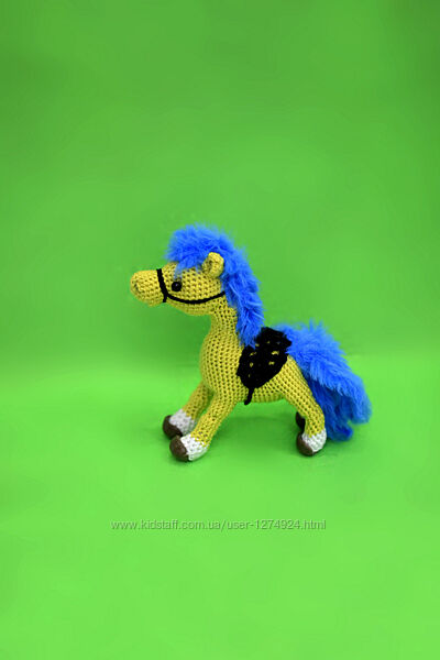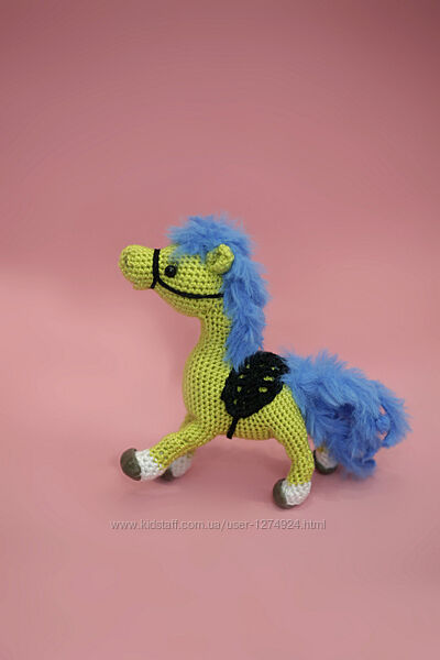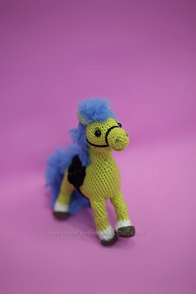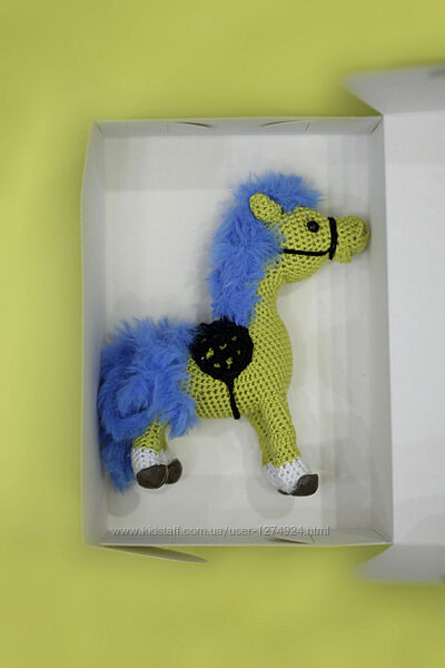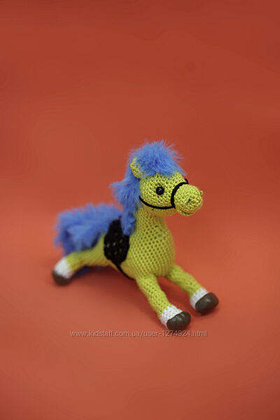 Коник символ 2026 року зв,язан гачком з акрилової пряжі. Розмір в висоту 13 см. Ножки згинаються, всередині мідний дріт Не для маленьких дітей.Подарункова упаковка, ручна робота.