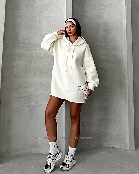 Створи свій стильний casual-образ з комфортним оверсайз худі — ідеальний вибір для щоденного образу. Модель подовжена, можна носити як сукню або з лосинами.