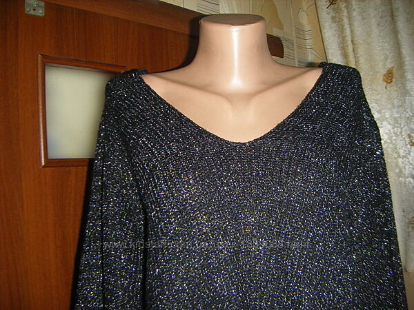Стильный свитер-туника с люрексовой нитью, крупная вязка, размер XXL