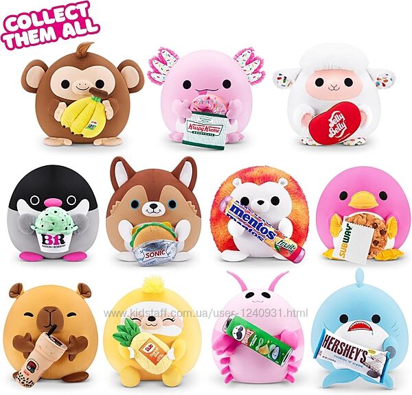 Перекус: Кожен перекус постачається зі своїм улюбленим ліцензованим перекусом. Який ваш улюблений?Суперм´який плюш: Наші 8-дюймові іграшки Snackles ідеально підходять за розміром та виготовлені з найм´якшого та найм´якшого плюшу!